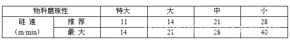 輸送不同磨琢性物料時所推薦的鏈速